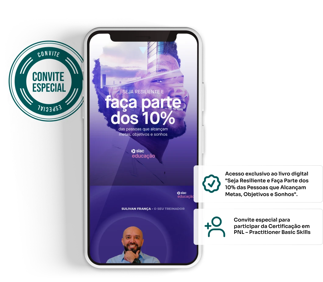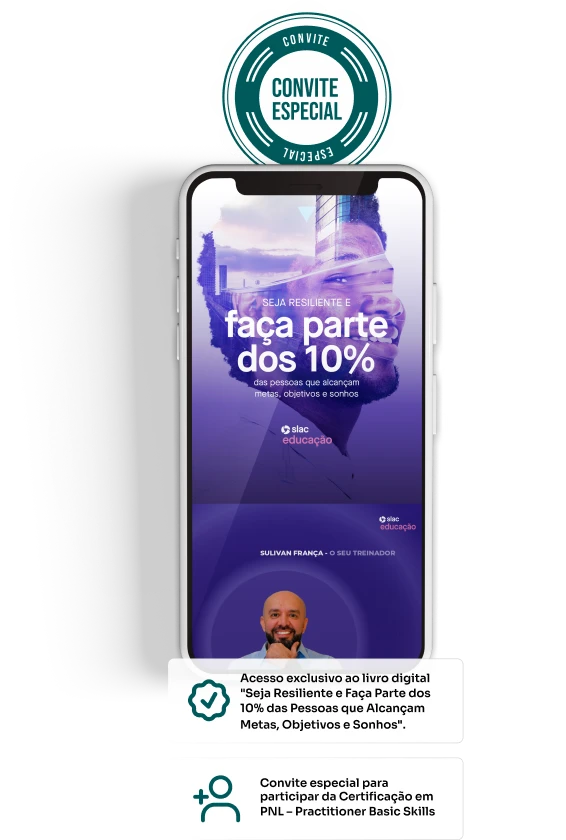 Garanta o livro digital “Seja Resiliente e Faça Parte dos 10% das Pessoas que Alcançam Metas, Objetivos e Sonhos” e tenha acesso às técnicas de Programação Neurolinguística que desenvolverão sua inteligência emocional e reprogramarão sua mentalidade para superar barreiras internas e alcançar maiores resultados na vida e na carreira