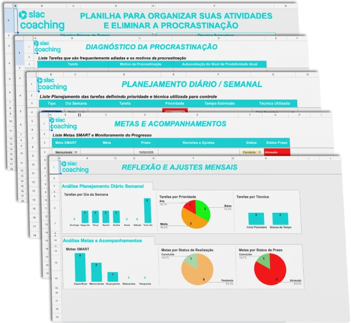Baixe gratuitamente a planilha de Organização e Gestão de Atividades e tenha uma ferramenta prática para eliminar a procrastinação, estruturar suas tarefas e alcançar seus objetivos com mais eficiência.